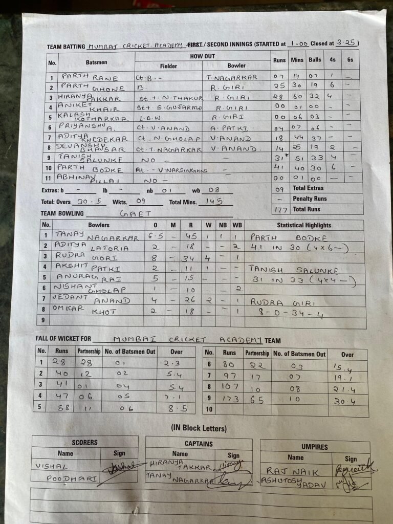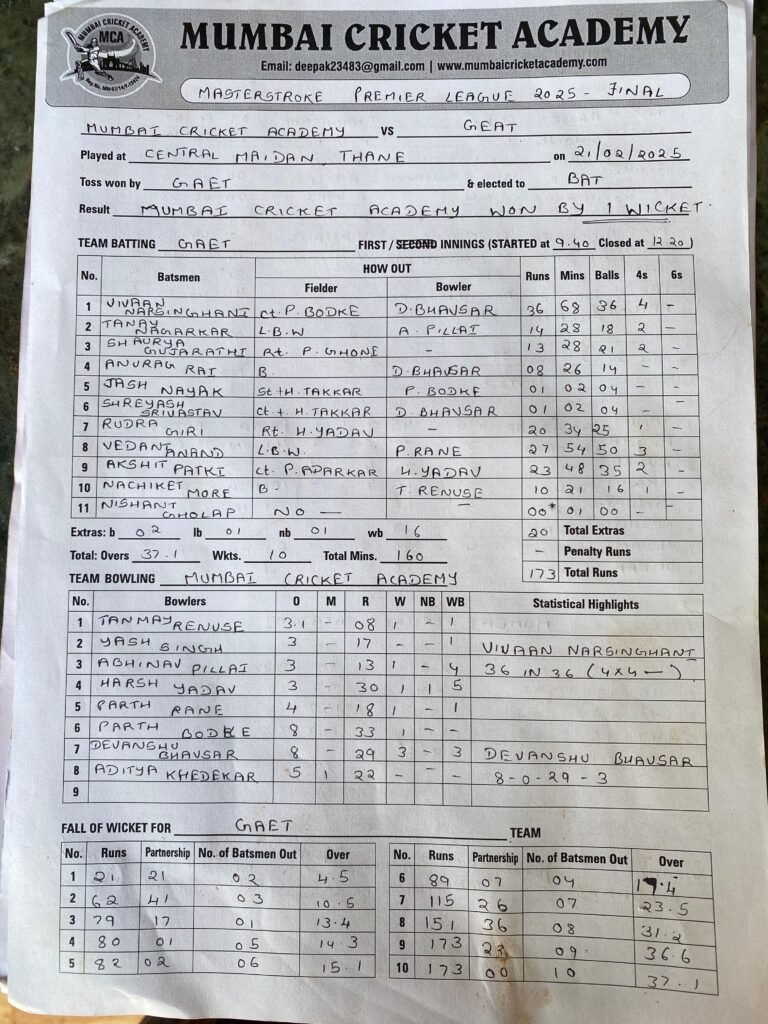 Mumbai Cricket Academy vs GEAT