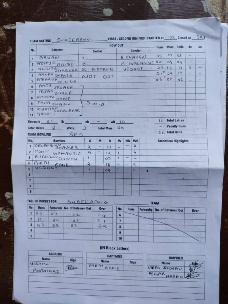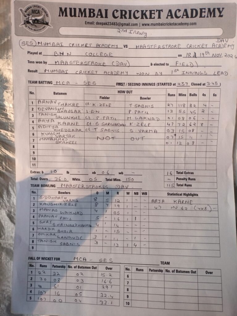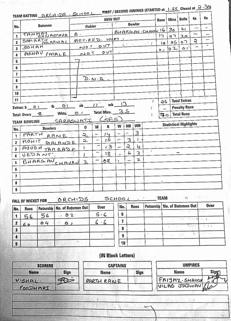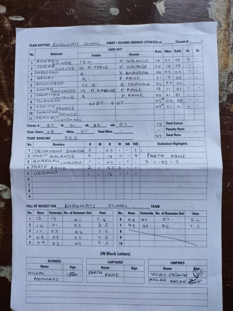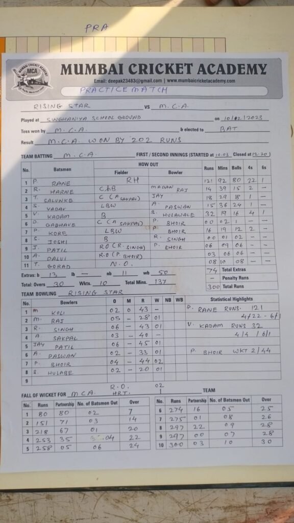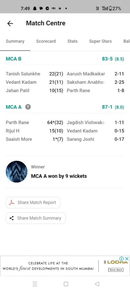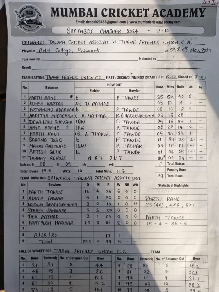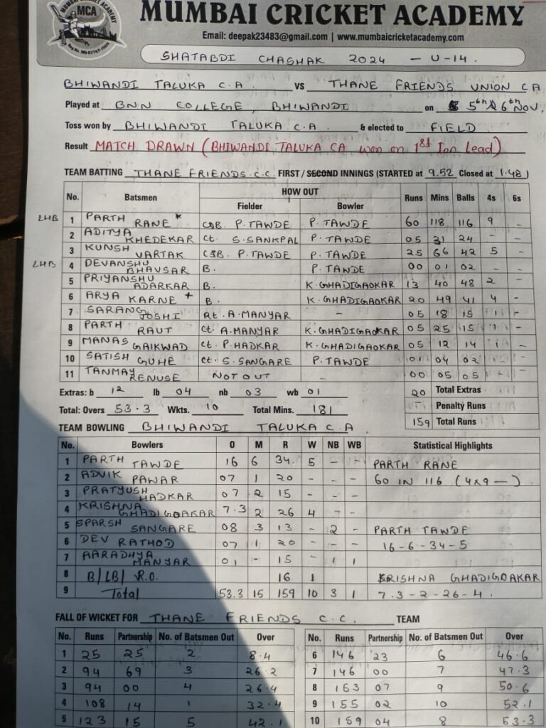 Parth Rane Selected MCA dream 11 cup u-14 Ravi shastri XI team |