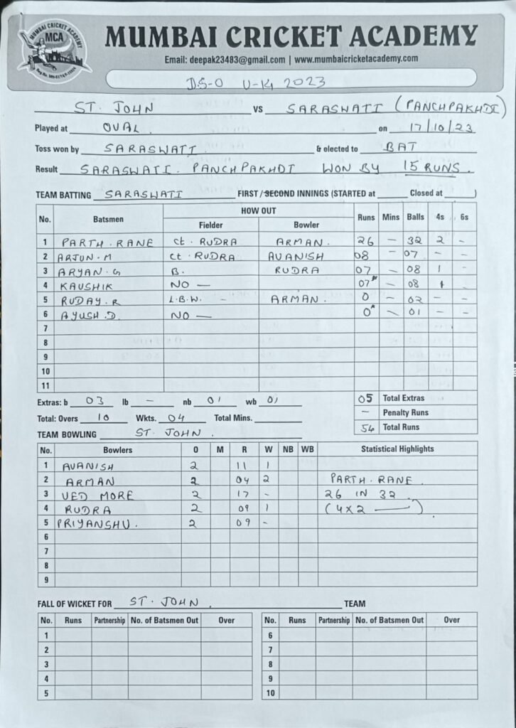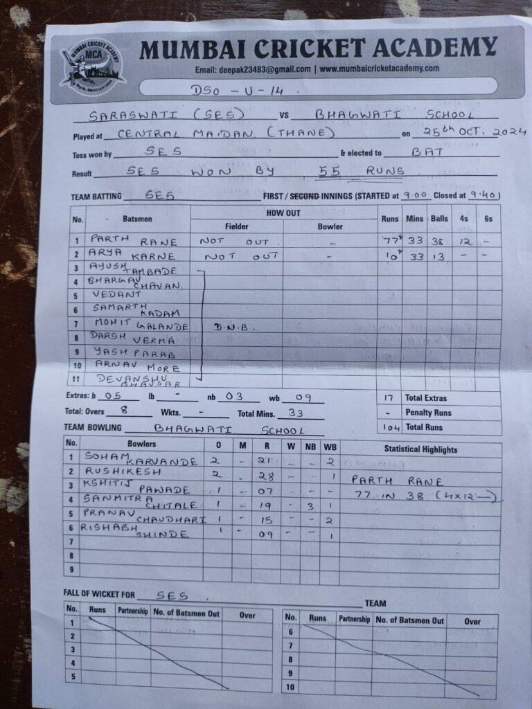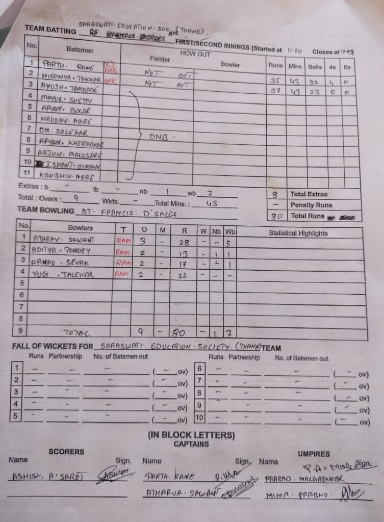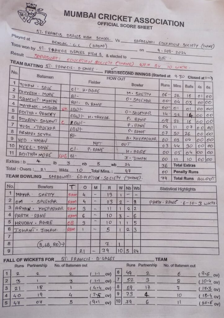 ST. Francis Dsalds High School vs Saraswati Education Society