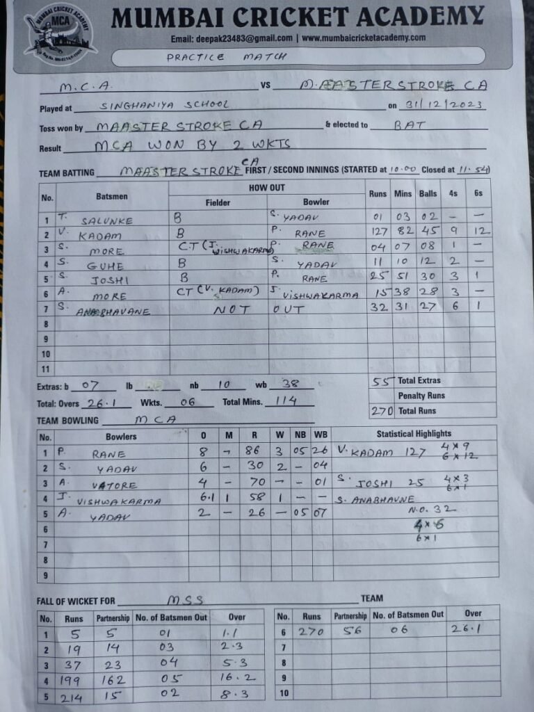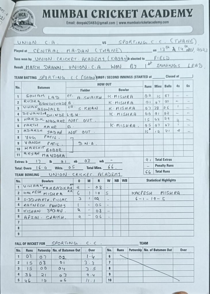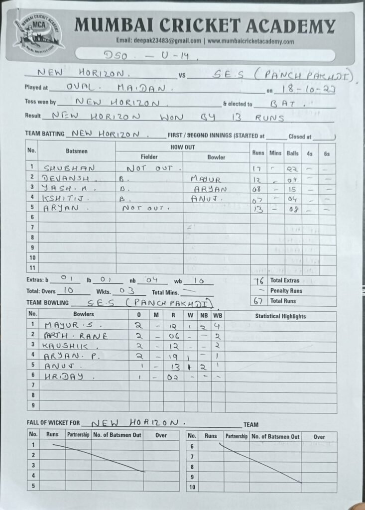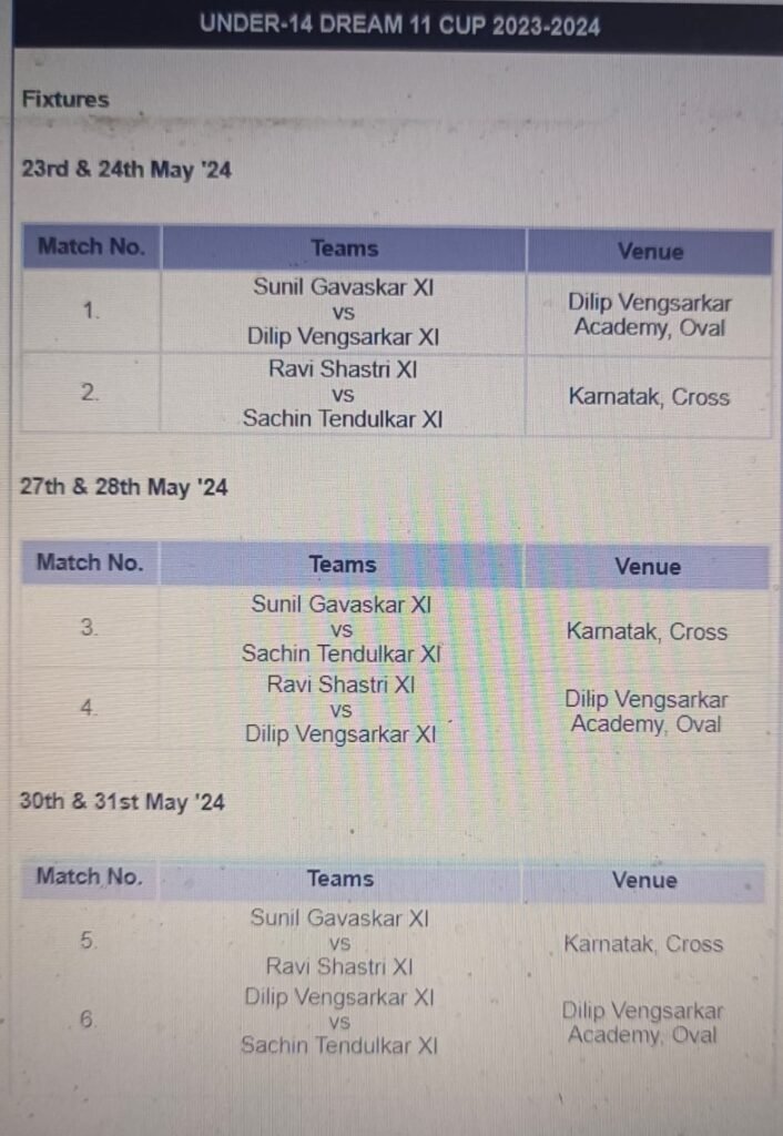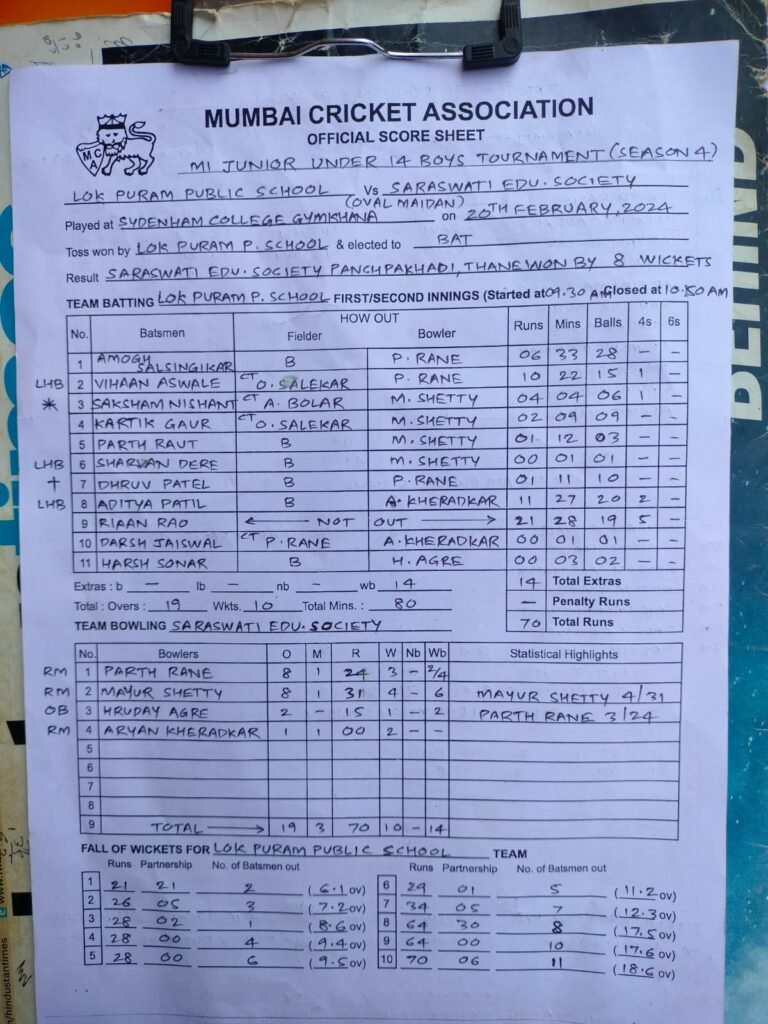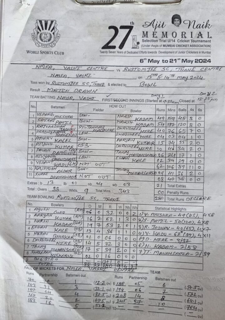 MCA Ajit Naik memorial Cup u-14 tournament |