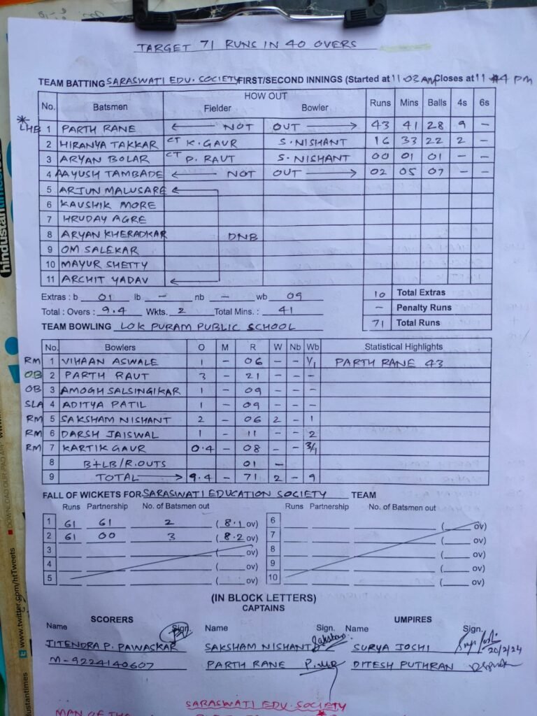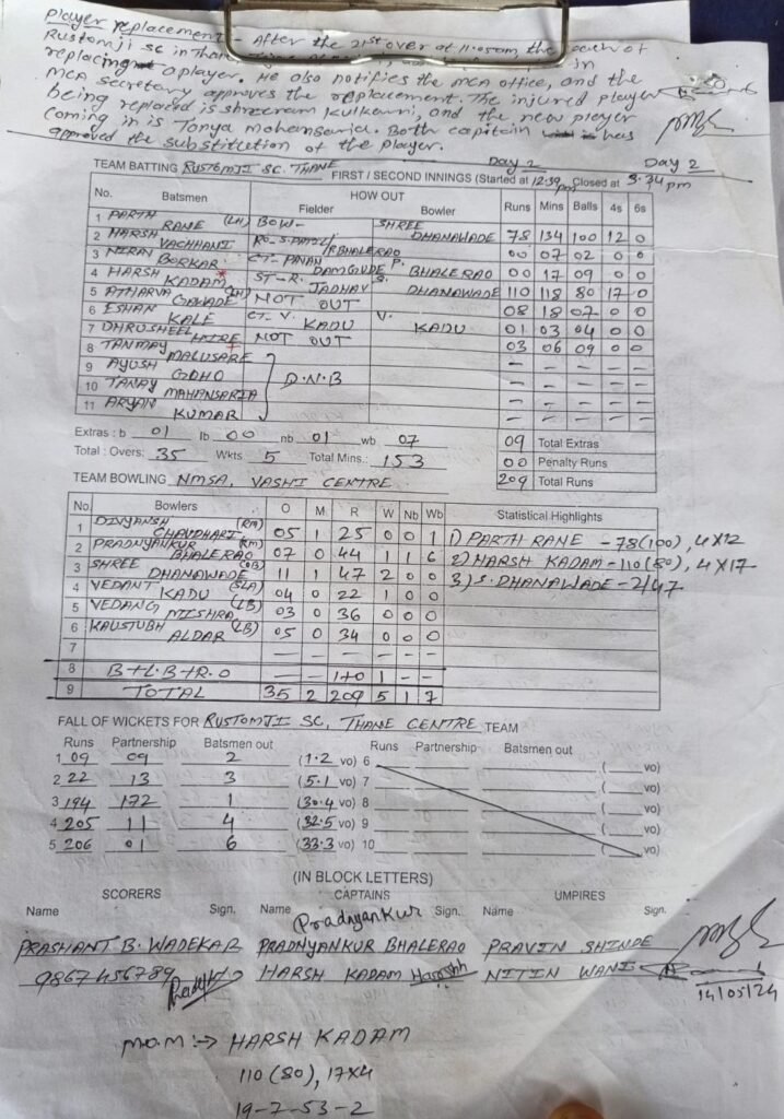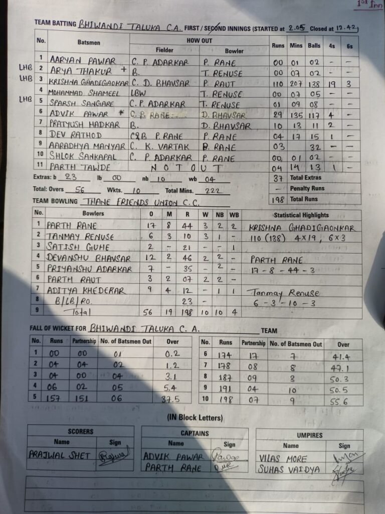 Parth Rane 105 balls 240* runs notout Parth Rane