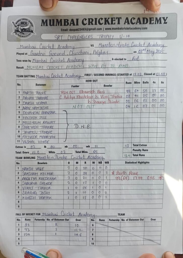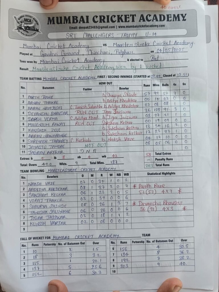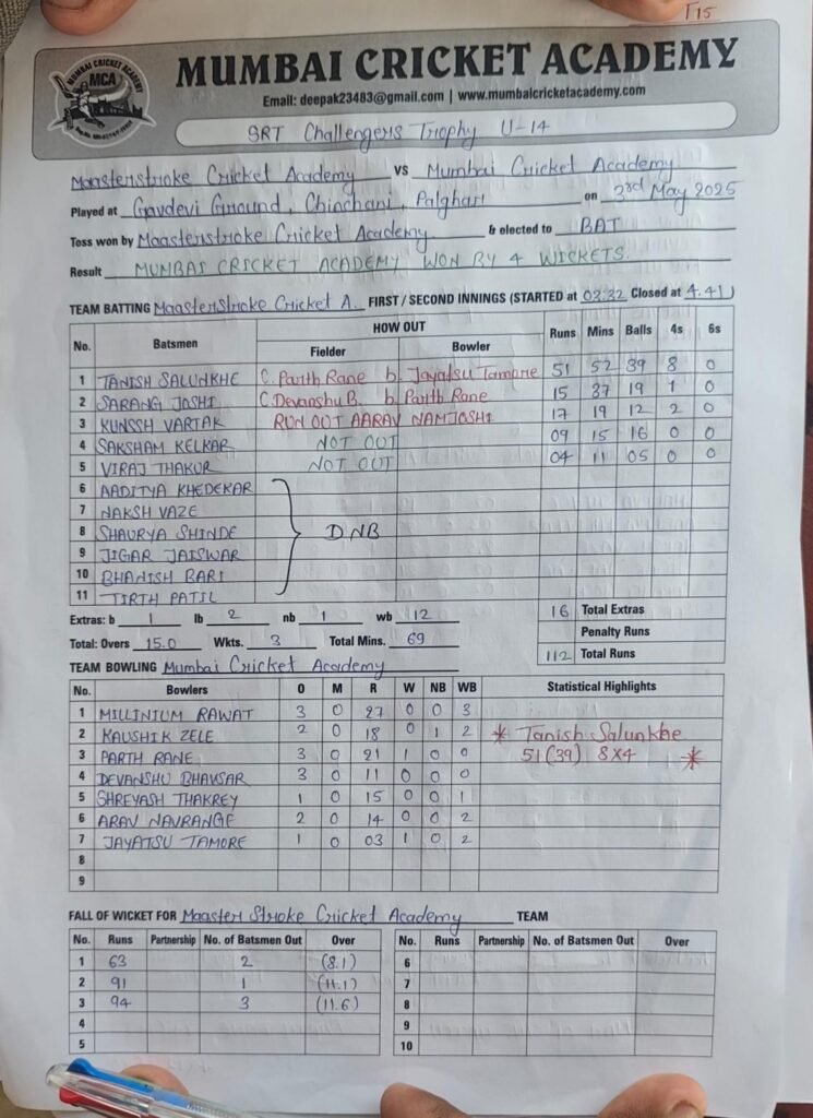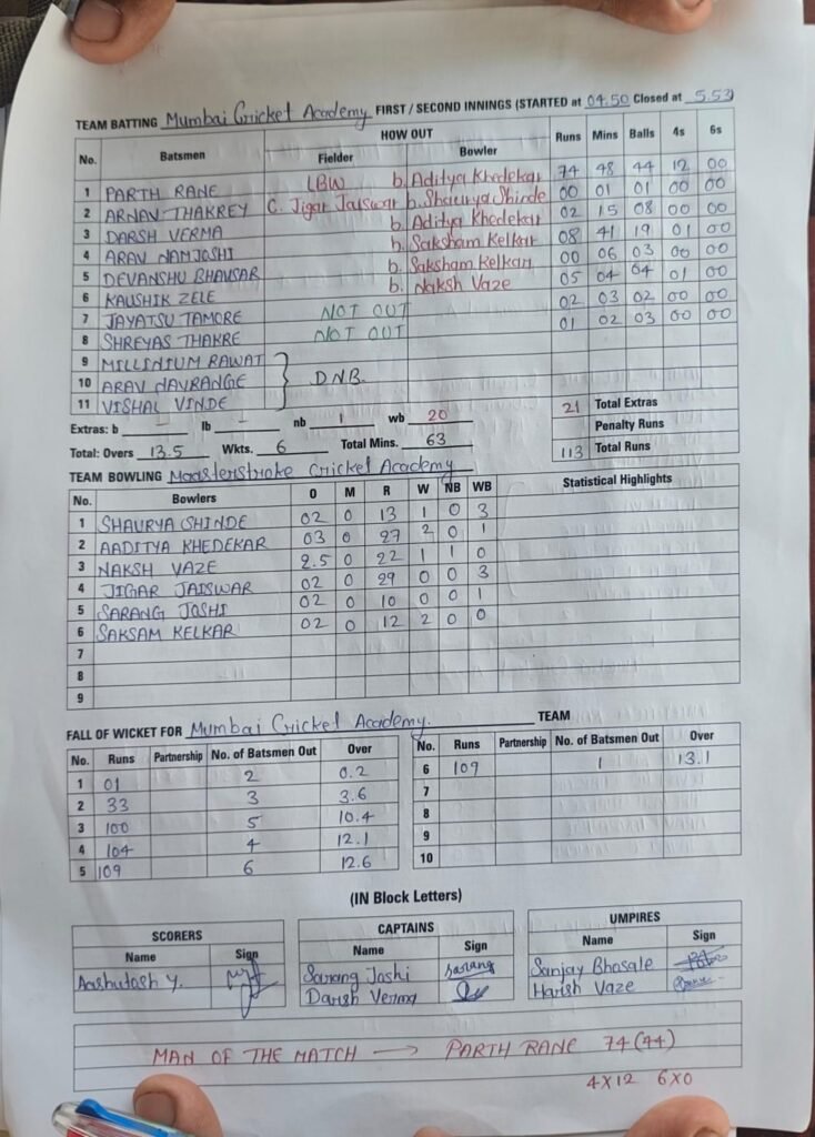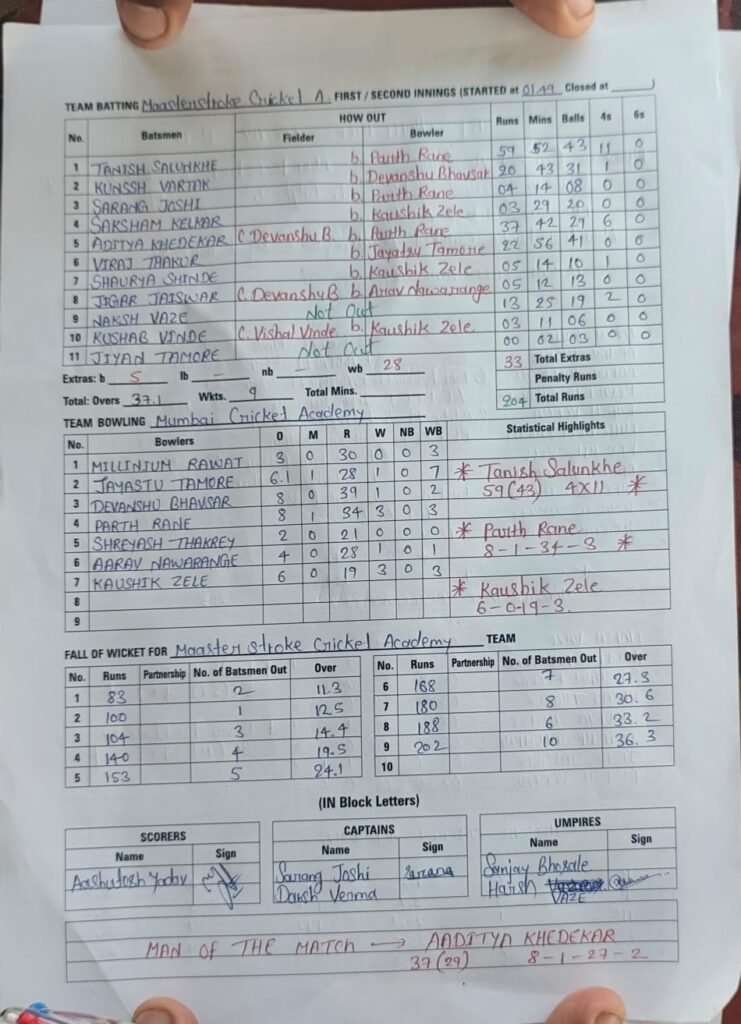 Mumbai Cricket Academy vs Maasterstrke Cricket Academy
